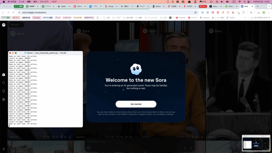 ホームプログラミング Sora 2招待コードを自動取得する方法 2025年10月5日 SHARE ポスト シェア はてブ LINE みなさんこんにちは!プログラマのアドルフォイです。 今回はOpenAIのSora 2の招待コードを自動取得するプログラムを公開します。 Qiitaに招待コードがコメントで貼られるので、それを自動取得、コピーして、自動でペーストしてエンターを押すプログラムです。 もしかしたらコピーまでかもしれないので、そこはご確認ください。 事前にQiitaのAPIを設定から取得して、コード内に記載するか、コマンドで設定しておいてください。 以上です! Sora2すごいですね! お楽しみください。 https://github.com/Adolfoi/Sora2Get コメントを残す コメントをキャンセルメールアドレスが公開されることはありません。 ※ が付いている欄は必須項目ですコメント ※ 名前 ※ メール ※ サイト